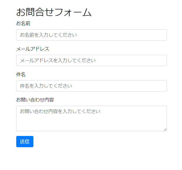 『Bootstrapでお問合せフォームを作ってください。項目は「お名前」「メールアドレス」「件名」「お問い合わせ内容」「送信ボタン」です』