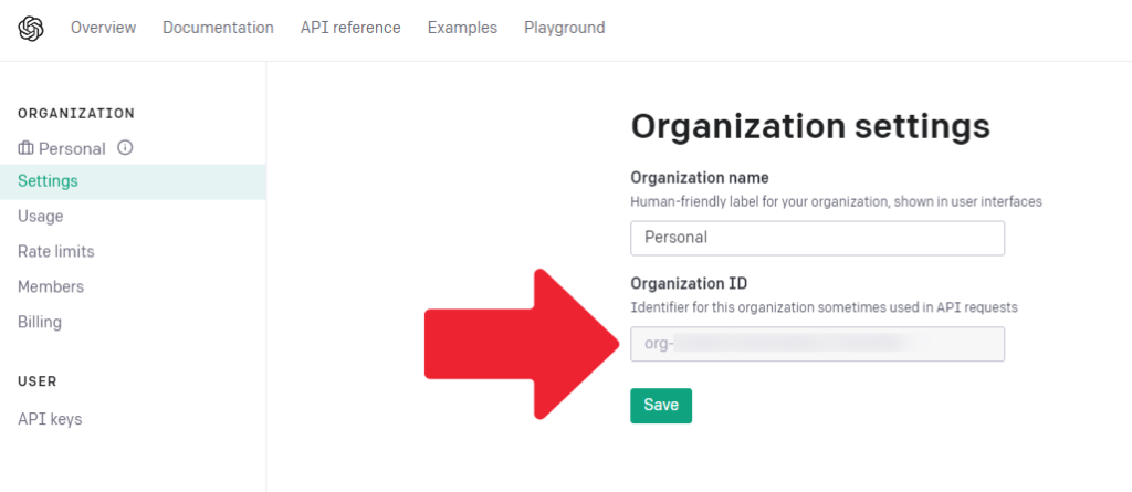 Organization IDは、ChatGPT内のORGANIZATION > Settingsページ内に記載されています。