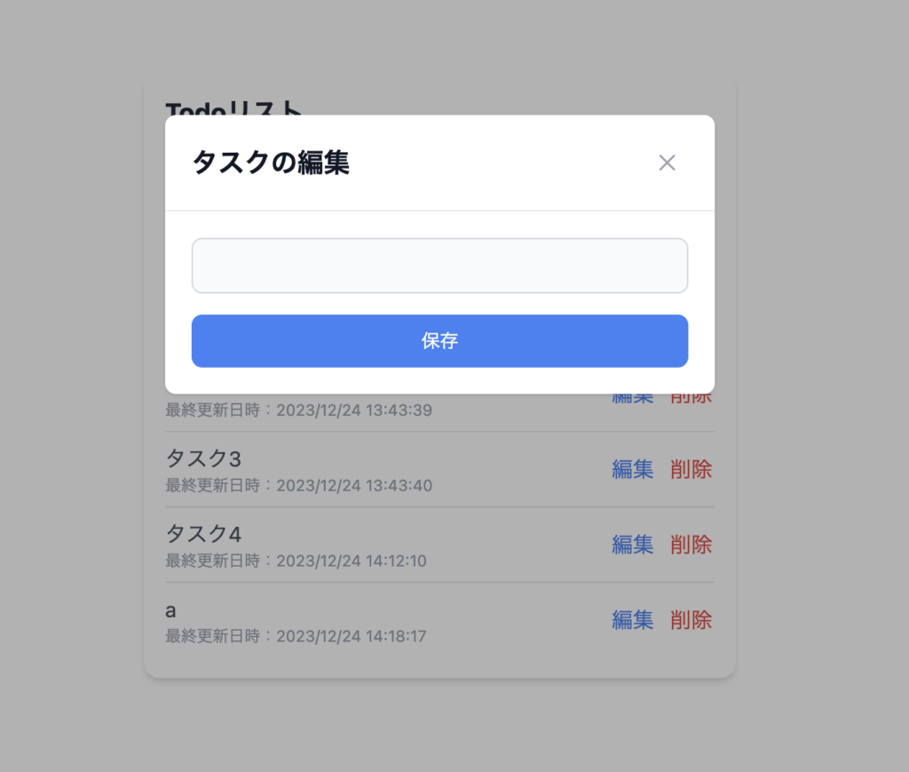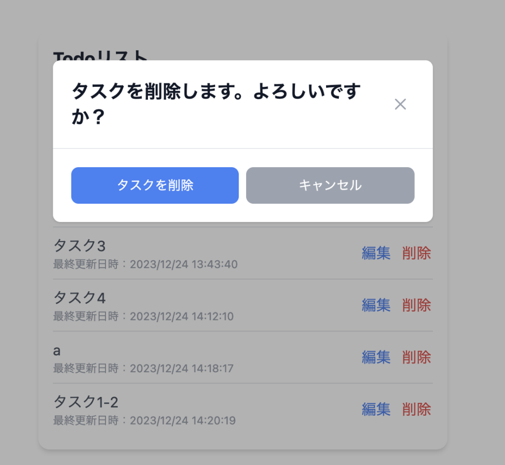 「タスクを削除」ボタンを押すと、Supabase側でも削除が行われます。