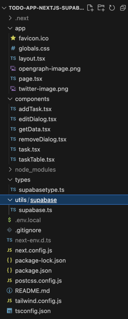 Databaseにアクセスするため、事前にsupabase.tsの中身を作成します。