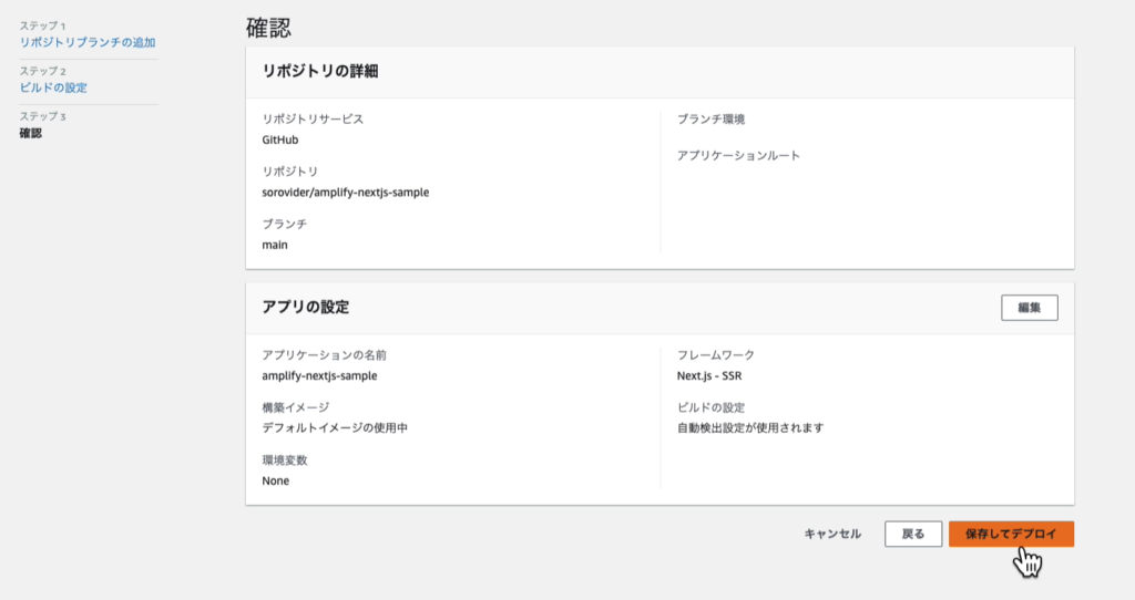 画像のような構成になっていれば”保存してデプロイ”を押します。