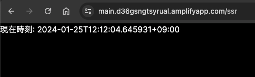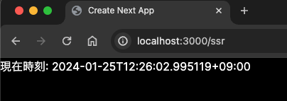 現在時刻が表示され、リロード等で時刻が更新されていればNext.js(SSR)が正常動作しています。