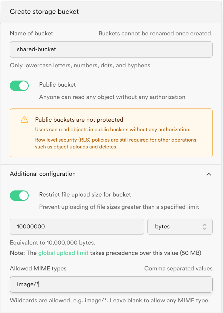 - `Allowed MIME types`をimage/*に(許可するファイルを画像に制限します。)
