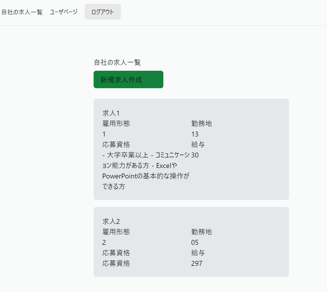 その後、求人一覧を見るとこのように追加されていることがわかります。