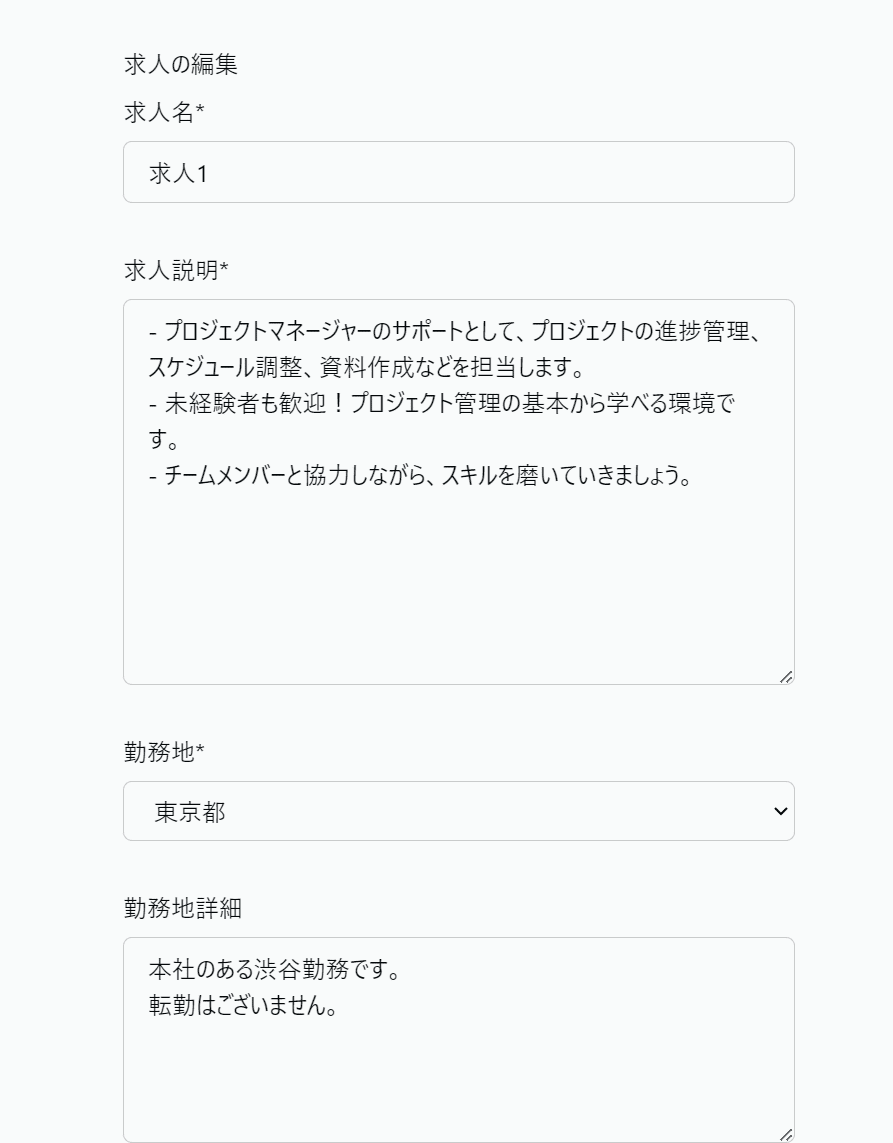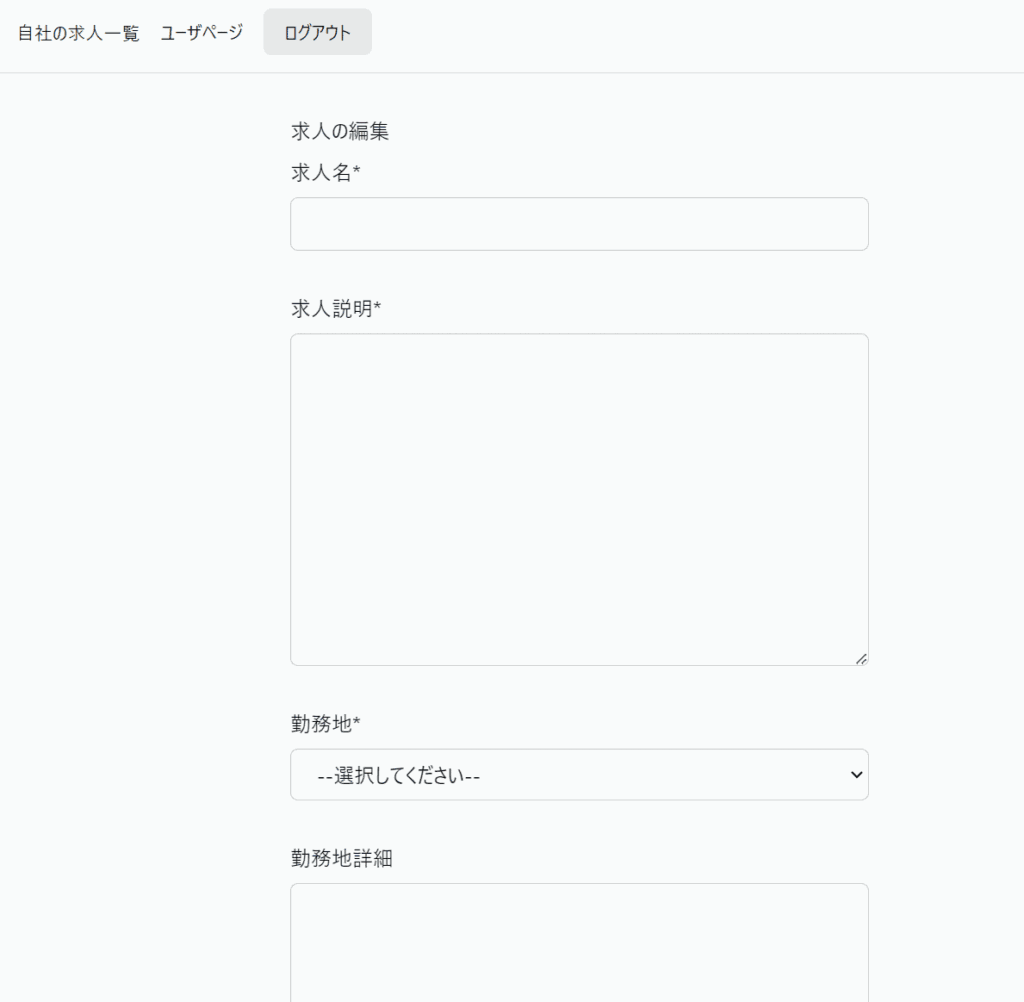 空の求人編集画面が表示されるので適当に入力して作成しましょう。