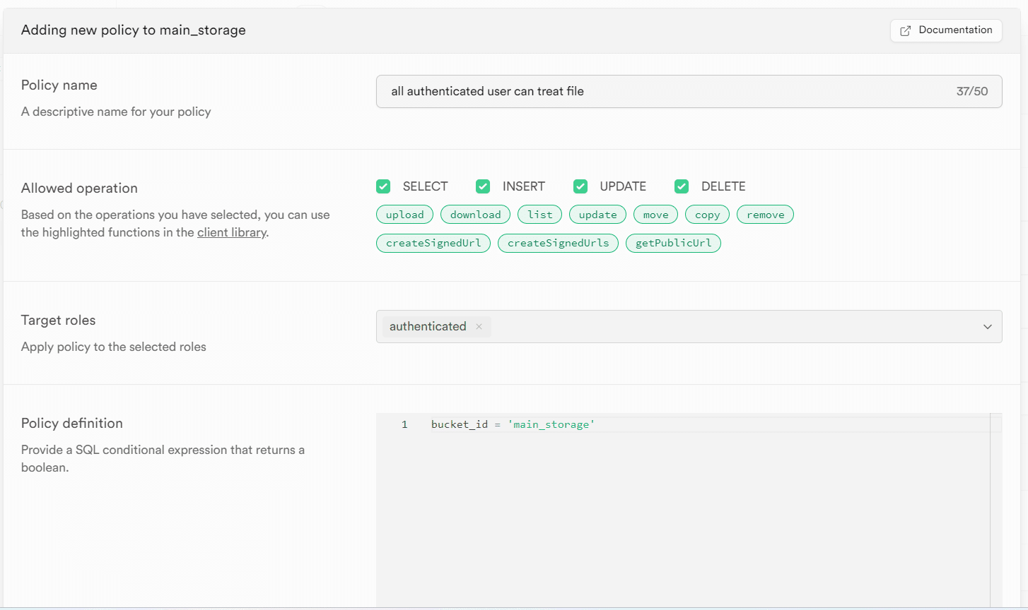 SupabaseのStorage設定