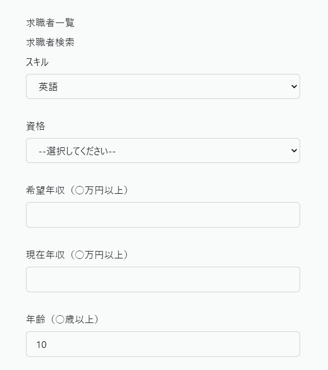 こちらを利用して検索するとその内容にあった求職者のみが表示されます。