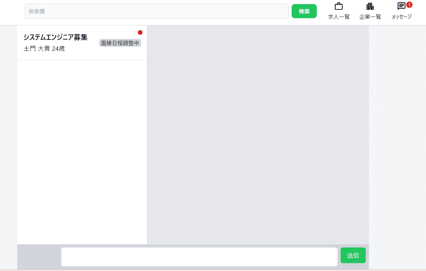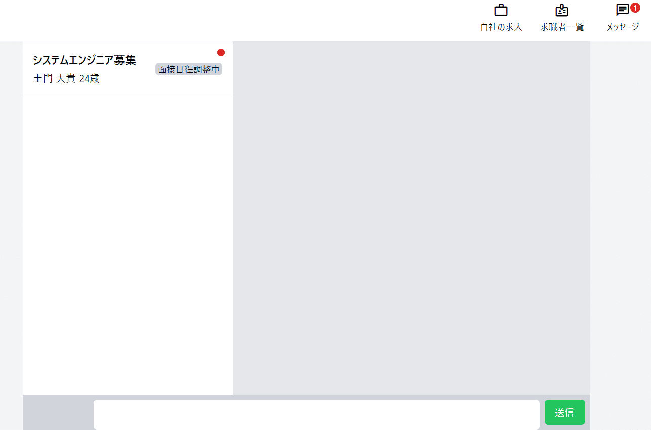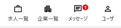 この状態で求職者側で開くと、ヘッダーのメッセージに通知数が表示されます。