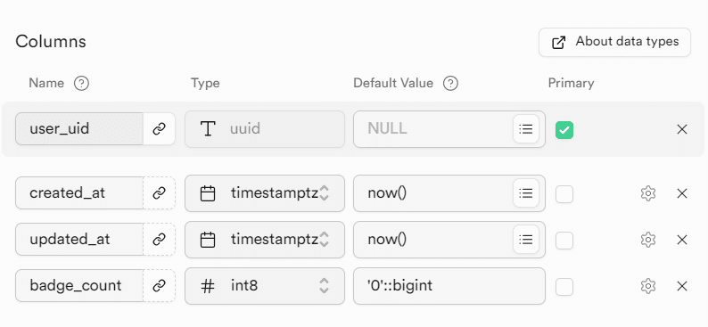 ユーザーごとに通知数を管理するためのテーブルを作成します。