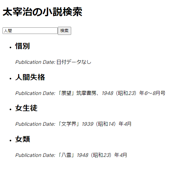 実際に検索と検索した小説の表示処理を行うコンポーネントです。