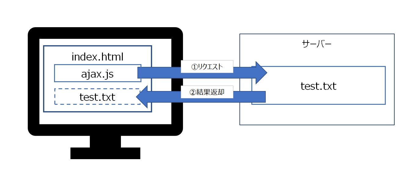 httpRequest.open('GET', 'test.txt'); // HTTPリクエストメソッド。第2引数はURLを指定